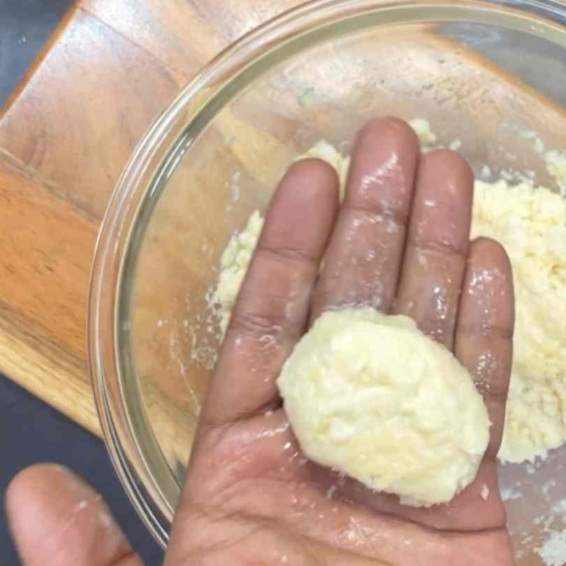 - Scoop into small logs and transfer them to the prepared baking dish.
