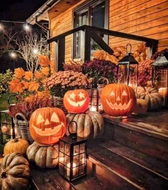 A simple and easy Halloween Outdoor Decor using Jack O Lanterns.