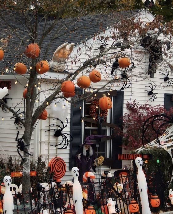 If you're in for a last minute Halloween Outdoor decor, just use store bought Jack O Lantern carved pumpkins and decorate your outdoor. You can also use some paper mache or dried branches for a cool effect.