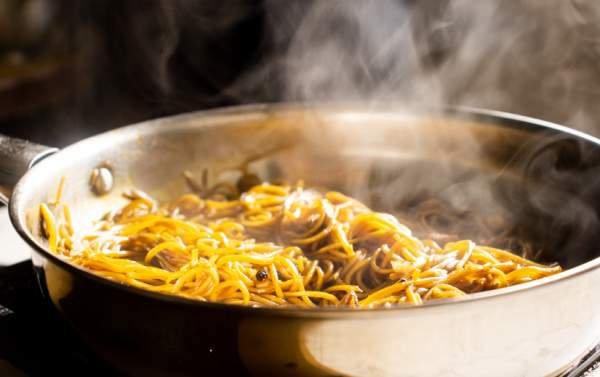 - As the oil shimmers, add the noodles and toss for 2 minutes over high heat