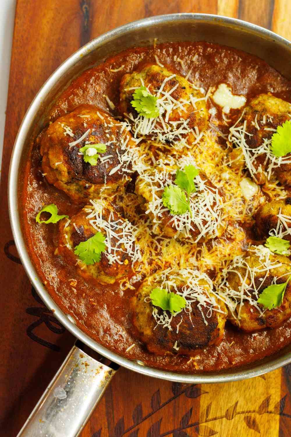 - Add the sauce to the same skillet and simmer for 3-4 minutes. Gently add the Chicken Ricotta Meatballs back to the simmering sauce.
