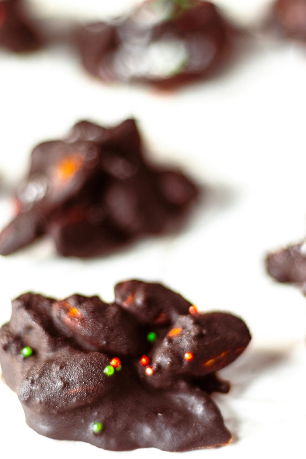 I love to include a variety of cookies in my holiday cookie tray and these Dark Chocolate Almond Clusters are candies which I make every year.