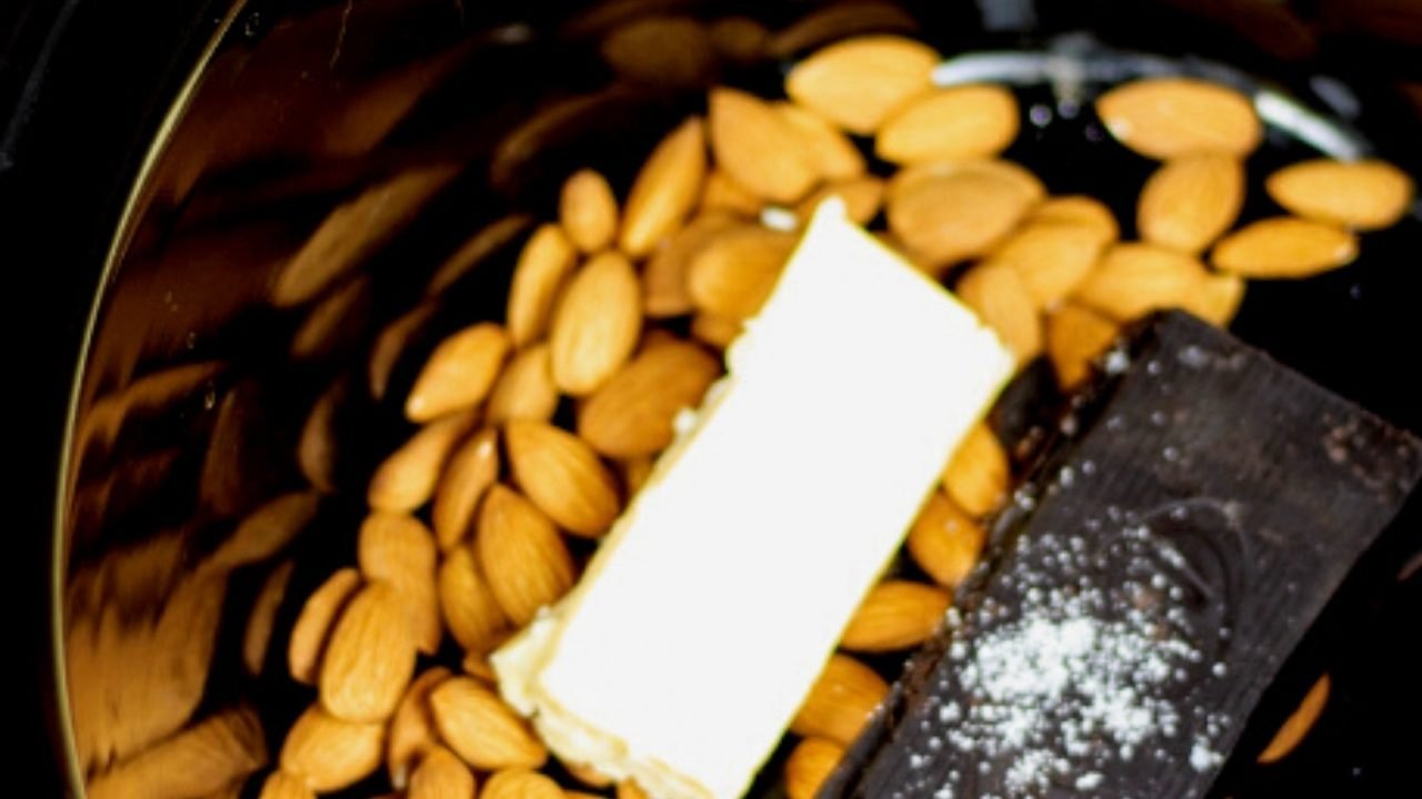 - Add the Almonds, Dark Chocolate, Butter in the Crockpot. Sprinkle Sea Salt over them