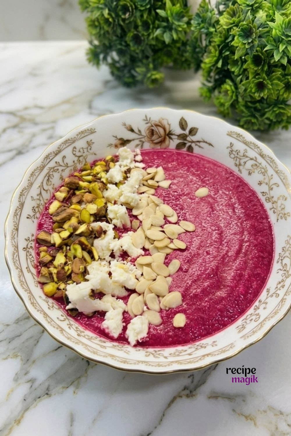 Creamy Beetroot Feta Dip is a vibrant, 10-minute vegetarian appetizer made with cooked beetroot, tangy feta cheese, garlic, lemon juice, and olive oil all blended until silky smooth. Perfect as a healthy party dip, mezze platter spread, or easy snack served with pita chips, crackers, or fresh veggies. Naturally gluten-free, packed with nutrients, and impossibly beautiful in pink this beet feta dip is the showstopper your table needs. 😍😋✨🩷
