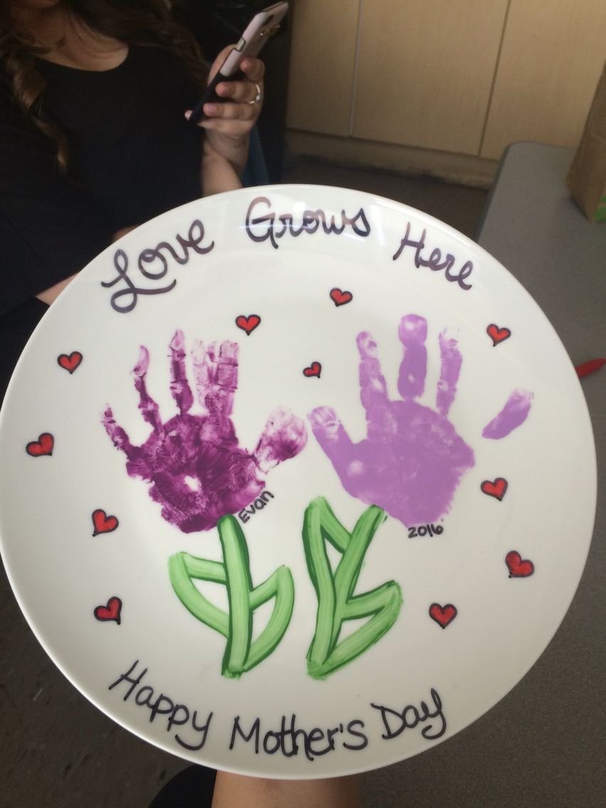 Cutest Hand Printed Plate for Mom - Paint your child's hand and press it onto a plain ceramic or paper plate. Once dry, add a little message or date. Mum can display it and treasure it forever — this one's a proper keepsake.