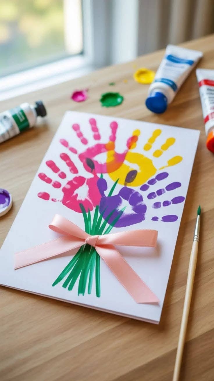Handprint card for Mom - Keep it simple and classic. Press a painted handprint onto the front of a folded card, let it dry, then write a heartfelt message inside. Decorate the edges with drawn flowers or little hearts. It takes ten minutes but means everything. Sometimes the simplest things hit the hardest. 💛