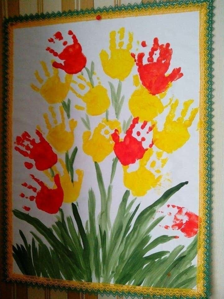 Each finger becomes a petal, the palm forms the flower. Make a few in different colours and arrange them into a full bouquet on paper. Simple, colourful, and genuinely beautiful. You'd be surprised how gorgeous this turns out!