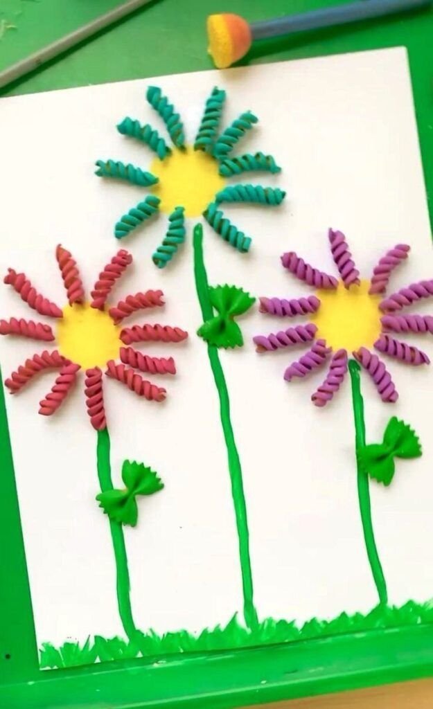 Glue spiral pasta in a circle to form flower petals, pop a googly eye in the centre, and paint once dry. It sounds quirky — and it is — but the result is absolutely charming. Kids will love this one.