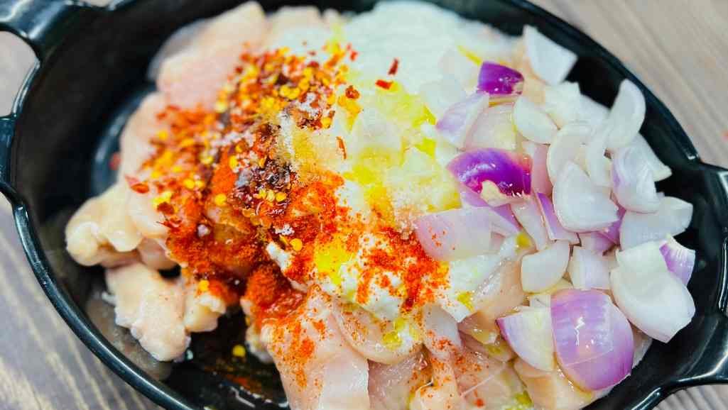 - Marinate the Chicken with all the spices. Cook the Chicken over medium low heat in a skillet for just eight minutes