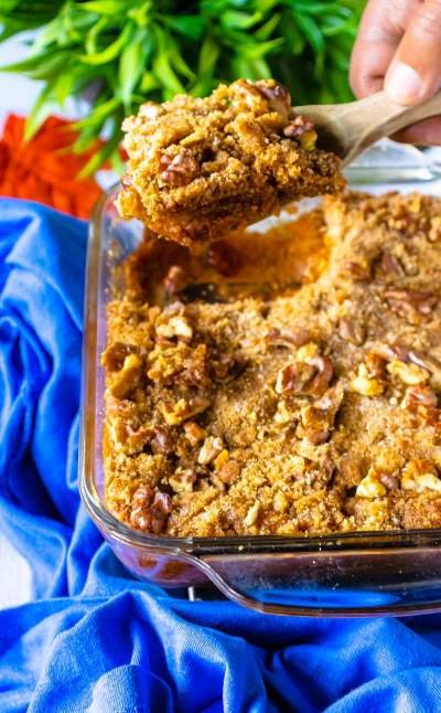 Bourbon Sweet Potato Casserole with Sweet n Savory Vacon Pecans by Half Baked Harvest