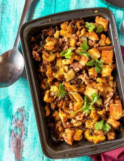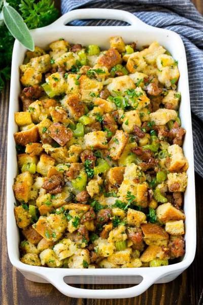 This comforting sausage stuffing recipe will make you want to grab it off the plate right away. Such an easy recipe with so much depth of flavors.