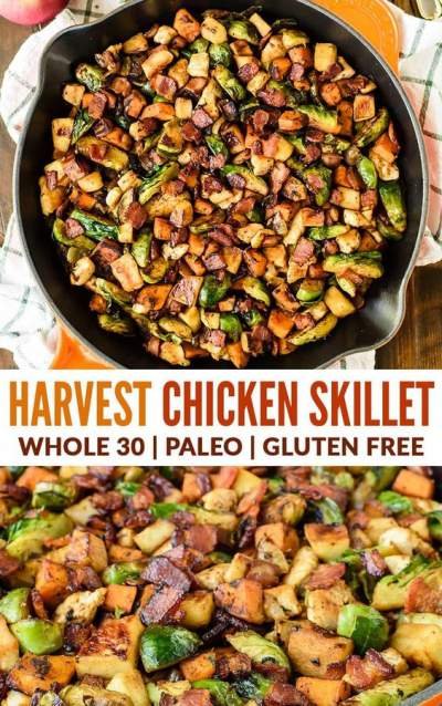 Well, we cannot let the Harvest season pass us by without making this amazing chicken skillet recipe. So amazing and so fulfilling. Just like the beautiful season of fall.