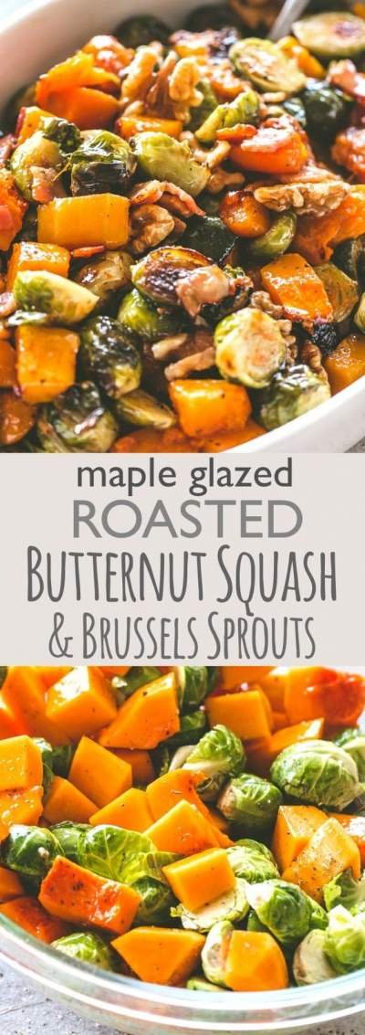 Maple Glazed Roasted Butternut Squash with Brussels Sprouts by Diethood