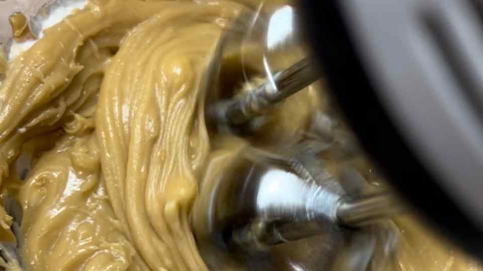 Combine melted peanut butter and honey with cream cheese and heavy cream. Beat until combined.