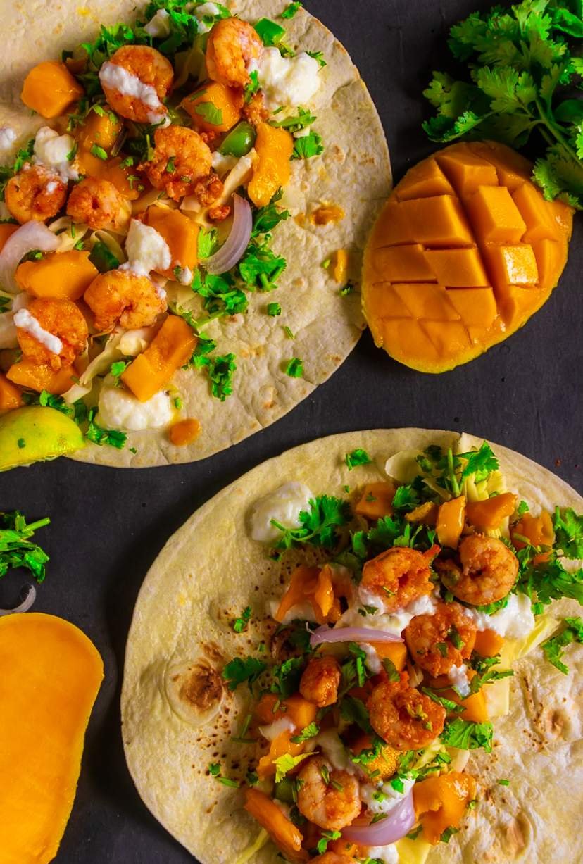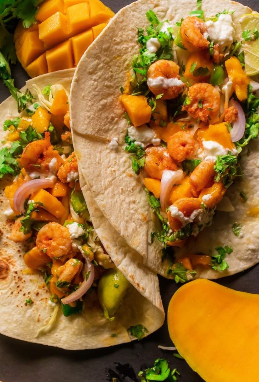 Shrimp Tacos with Mango Salsa - Jumbo Shrimps are seasoned with some basic spices and seared in a Pan until completely cooked through. Tucked in warm flour Tortillas with a homemade Mango Salsa, Sour Cream, and a handful of Chopped Parsley. Did you try: Blackened Shrimp Tacos or Shrimp Tacos with Pineapple Salsa or Baja Shrimp Tacos.