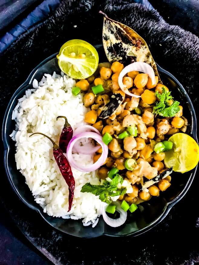 Summer Creamy Coconut Chickpea Curry is a sweet and mild curry recipe, which is served over a bed of steamed rice and topped with some Lemon juice, Sour Cream, and Onion Rings, and chopped Chillies. This is an easy and comforting Chickpea dinner recipe that can be served with Coconut Rice or Naan bread.
