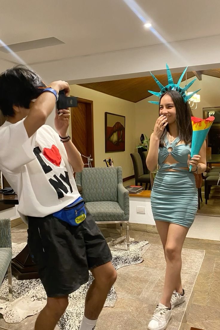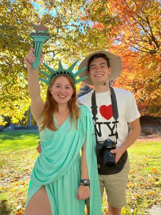 This is one of the absolute best costume of this year. You can make the Lady Liberty hat using cardboard or foam. Also for the I LOVE NY T-shirt you can get it printed online or hand paint using acrylic colors on a plain white tshirt.