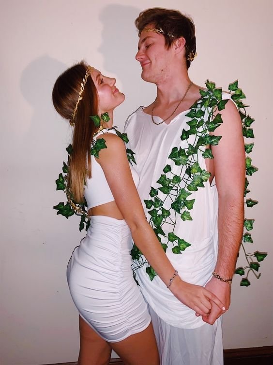 This is such a cute Adam and Eve Couple Halloween Costume. You can use any white shirt and DIY to make this one. Also you can add artificial creepers to it and this is super easy to DIY.