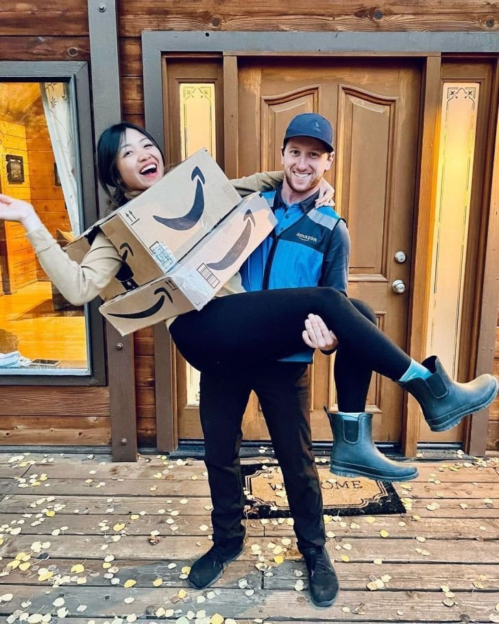 Amazon boxes and delivery boy costume